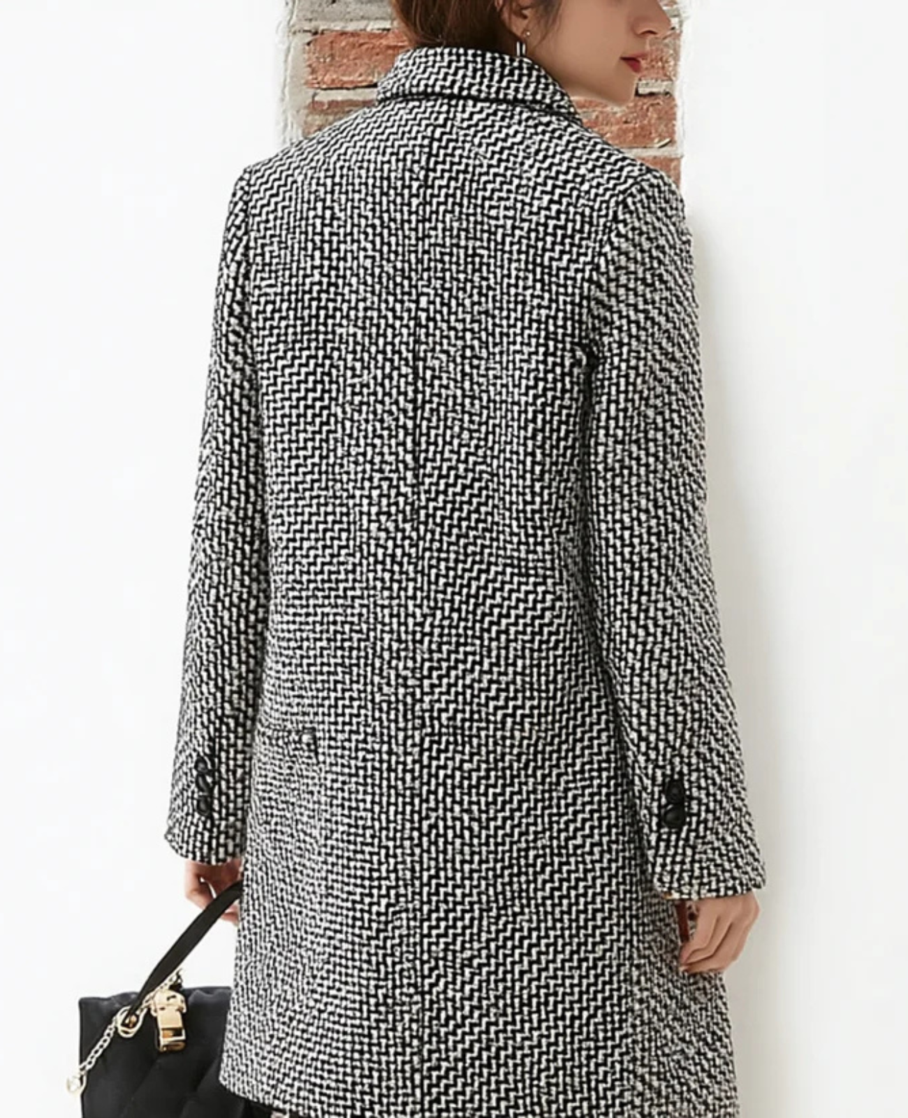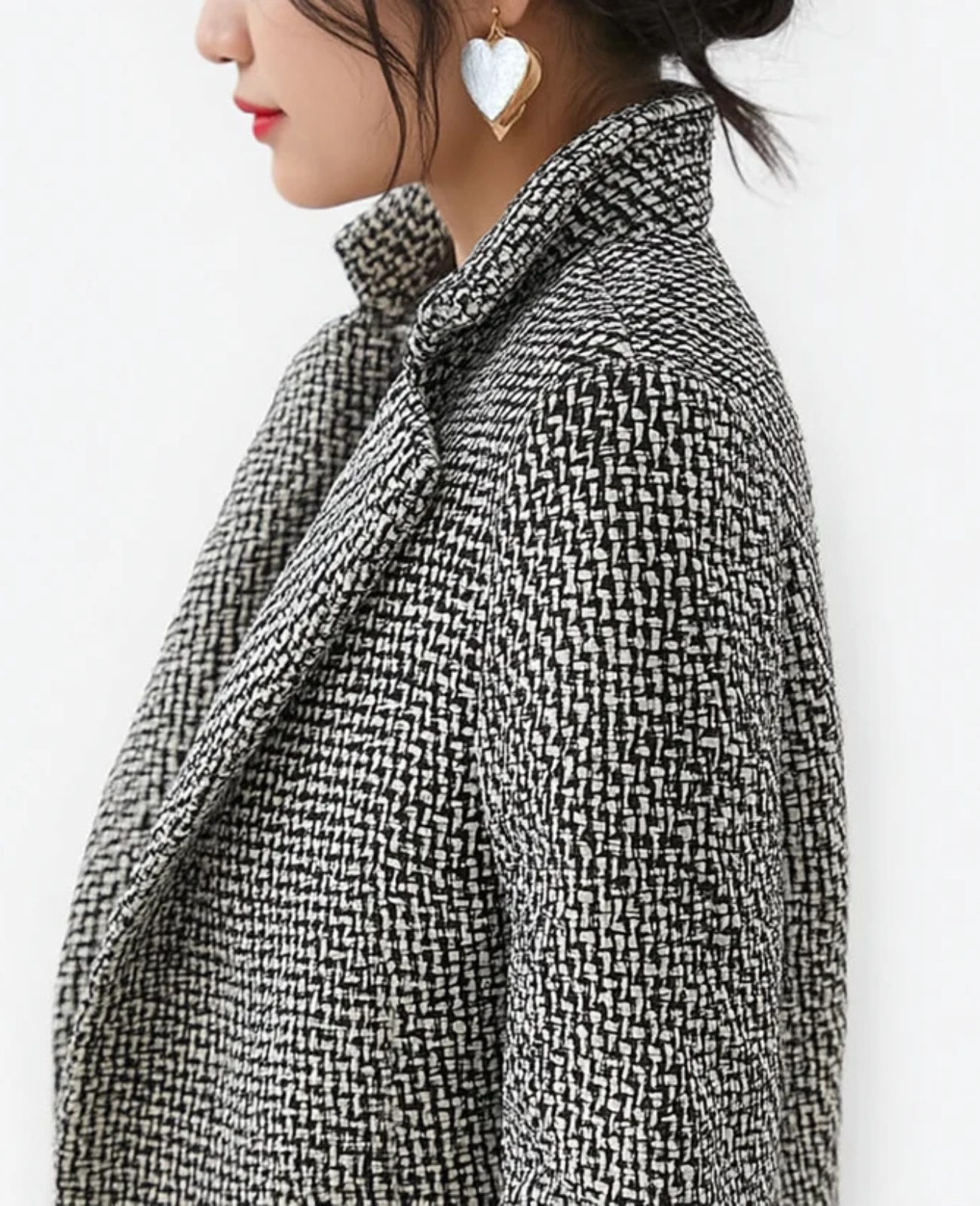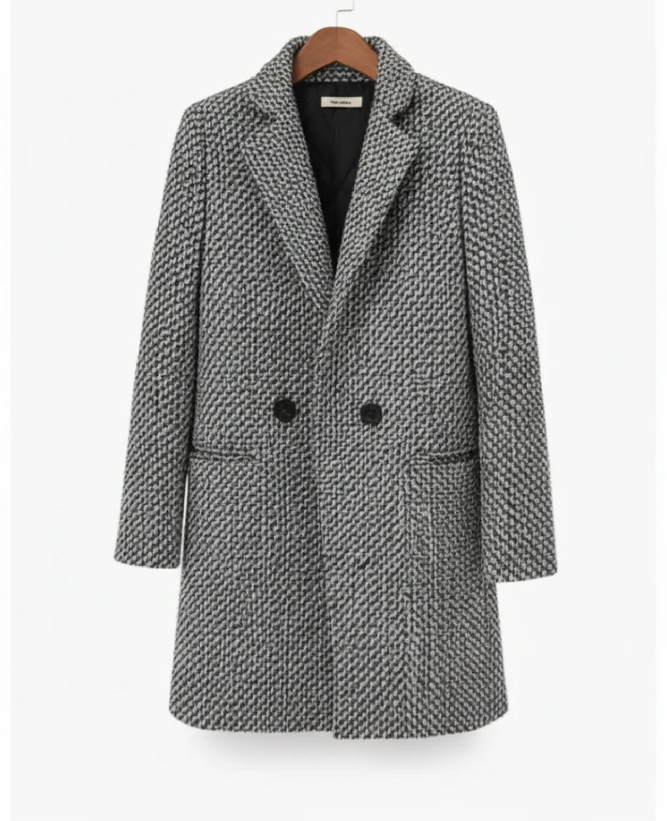 Irmina | Teksturowany Wełniany Płaszcz to idealne połączenie elegancji i komfortu. Dzięki klasycznemu krojowi i subtelnej strukturze materiału, płaszcz doskonale sprawdzi się zarówno podczas codziennych wyjść, jak i bardziej formalnych okazji.